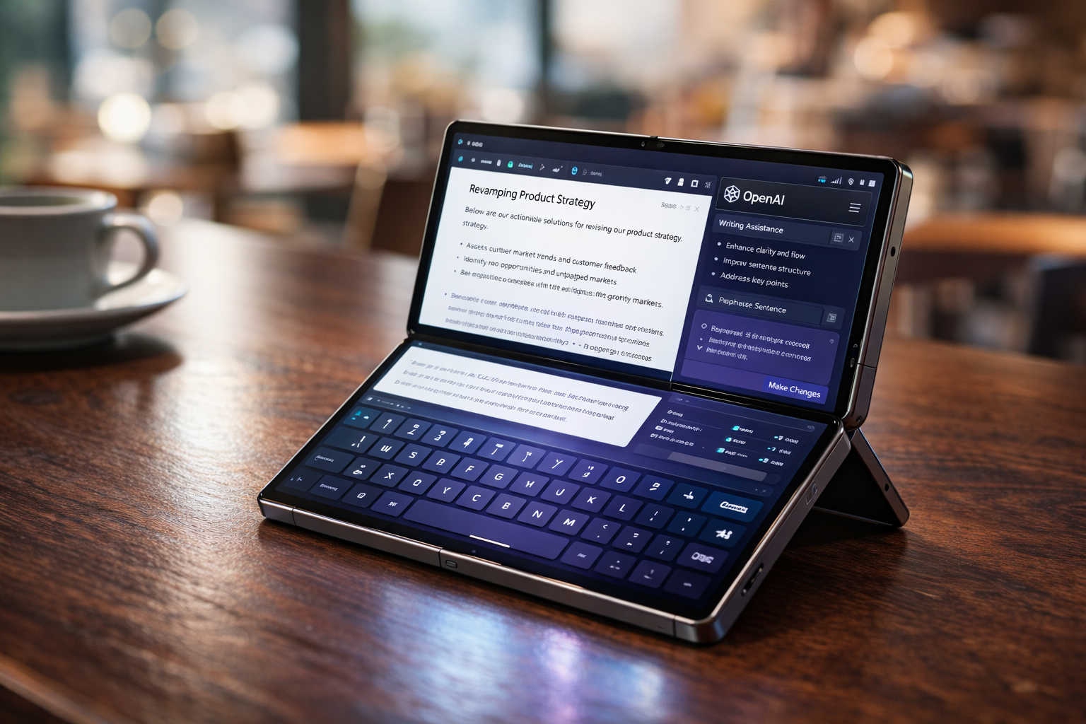 저는 이 폰을 쓸 때 화면을 반만 접어 'L'자 형태로 세워둡니다. 하단은 가상 키보드, 상단은 문서 창으로 쓰면 미니 노트북이 따로 없습니다. 카페에서 굳이 무거운 랩탑을 꺼내지 않아도 웬만한 원고 작성은 여기서 다 끝납니다. 여러분도 이 폰을 사시면 꼭 **'L자 모드'**를 활용해 보세요. 진정한 생산성 혁명을 느끼실 겁니다.